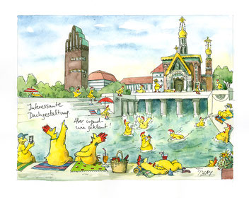 einem Knopfdruck veröffentlicht werden, aber für Sammler ist das nicht interessant.“ Peter Gaymann arbeitet am liebsten auf Papier. „Museen und Kunsthandlungen freuen sich darüber, dass ich viele