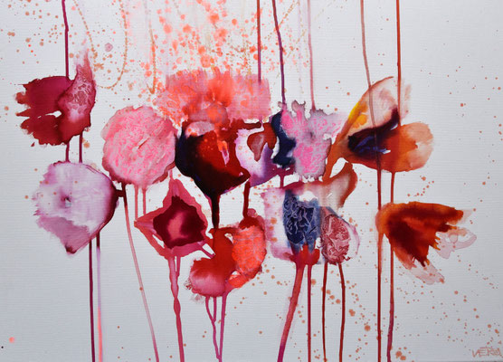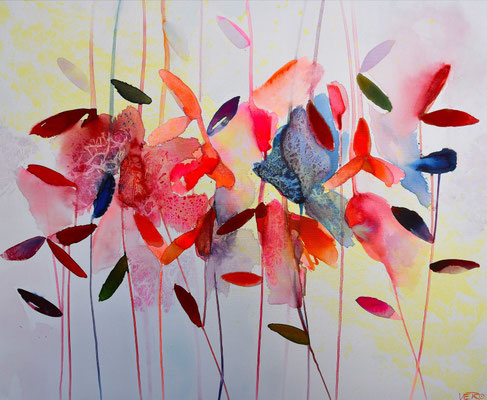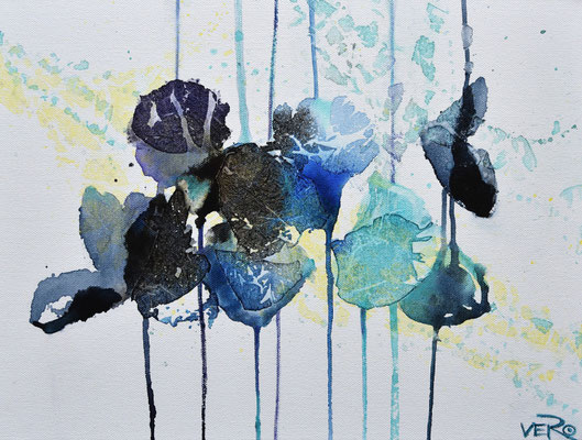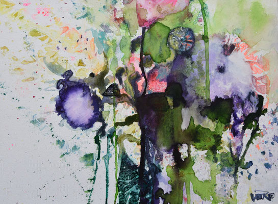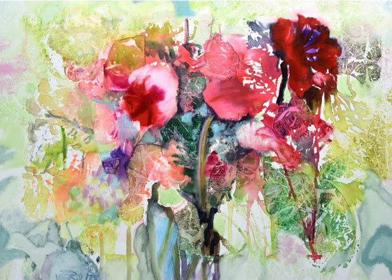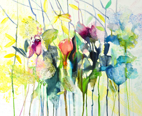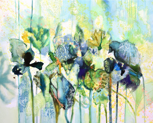 Nicht nur draußen in der Natur, sondern auch auf meinen Bildern ist alles im Wandel. Ich zerreiße und kräsche Feinpapiere und leime sie direkt auf die Leinwand. Unter dem Farbauftrag zeigen sich nun reliefartige Grate mit Tiefenwirkung. Ich collagiere und decollagiere, Formen verschieben sich ins Abstrakte, Malereien wie „IM WANDEL“ oder „HERBSTFARBEN“ entstehen. "